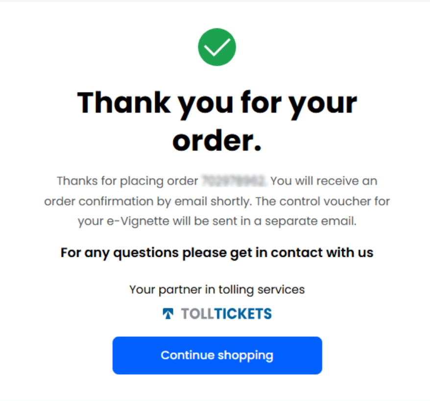 As soon as you click on "Continue" from the order overview, you will be asked to enter the payment method you selected during the order process and to authorise the automatic debit. As soon as you have successfully done this, you will be taken to step 6 of 6 and shortly afterwards you will receive a confirmation email to the email address stored in your customer account. The order will also be listed in your customer account under "Orders":